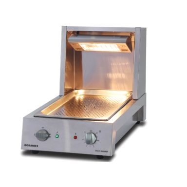 Enhance productivity and presentation by creating an area to hold, serve and display cooked chips with this portable multi-function Chip and Food Warmer.The MW10CS is supplied with a full size (65mm deep) gastronorm pan with a full size perforated and spiked pan (25mm deep) so that the unit can be used as a carving tray. The perforated and spiked tray secures the meat for easy carving, whilst the larger pan sitting underneath holds water to produce steam and keep the meat moist and collects any fat drippings. The heat lamp throws a warm yellow light over the meat to enhance presentation. The multi-function food and chip warmer is a compact bench-top warmer that can accommodate a range of accessories to suit the type of hot food being displayed. With heat source from above (quartz heat lamp) and from below (stainless steel elements), the unit attractively holds and displays hot food, ready for service.
