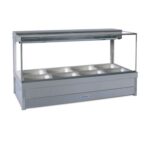 These square profile foodbars boast the latest in styling and design, at the same time offering all the features and reliability customers have come to expect of Roband Australia’s foodbars. They can be built-in, bench mounted or supplied with trolley to suit. Although other brands of pans may fit, this is not guaranteed due to variations in other manufacturers’ pans. Hot food display bars are designed to be served around and not over. If units are to be used in a serve over capacity, protection from hot surfaces will need to be considered. Environmental influences will affect the operating performance of hot food displays. Consideration should be given to food types, air movement and ambient temperatures before specifying. For dry, fried foods, Roller Doors are highly recommended.