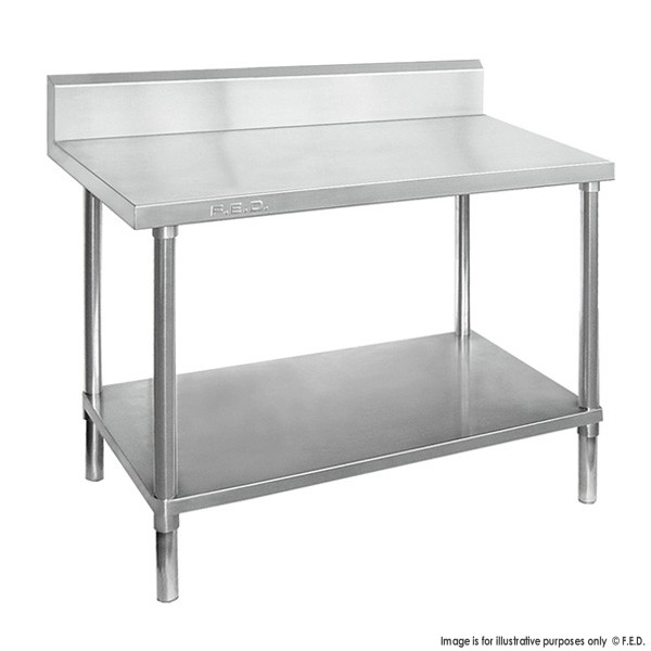 F.E.D. Work Benches are of the highest quality workmanship and are all quality 304 grade stainless steel construction,Designed to be dependable, this series incorporates all Stainless Steel benches with splashback and solid undershelf (optional pot shelf or leg brace available)