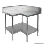 All Stainless Steel Corner Workbench with Splashback and Solid Undershelf – WBCB6-0900/A