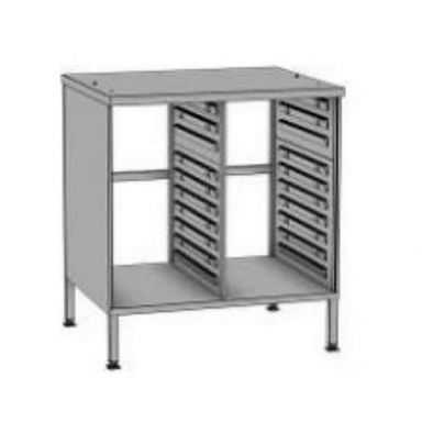 The Rational Stand II Bakery Standard, Version UltraVent, Model 6-1/1 is an advanced stand designed to enhance baking operations. Featuring the UltraVent technology, it ensures optimal ventilation to maintain an ideal baking environment. With its sturdy construction and tailored design for the 6-1/1 model, this stand provides stable support for bakery trays, optimizing space and workflow efficiency. Ideal for professional bakeries, it offers reliability and convenience for achieving consistent baking results.