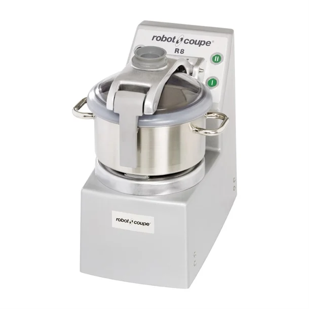 Puree, mix, chop, and blend dozens of foods with the Robot Coupe R8 8 qt. vertical food processor! This food processor features a 3 hp motor for outstanding power, and its stainless steel bowl provides rugged durability. The included two adjustable “S” blades easily cut through a wide variety of foods, and a magnetic safety system helps prevent operator injury. And thanks to its simple controls, even brand new employees can quickly learn how to use it.