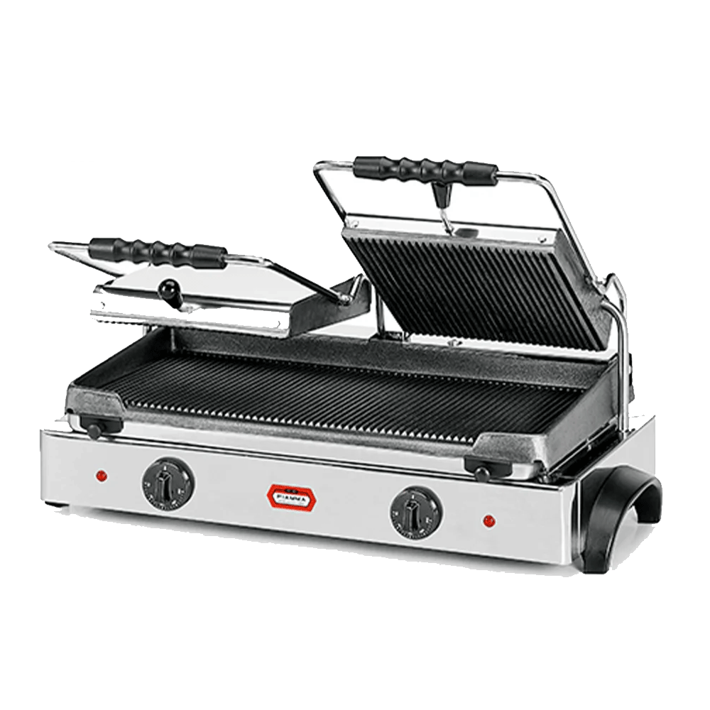 - Cast iron plates ensure both extremely even cooking and the ability to scrub the plates clean with abrasive