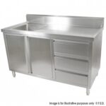 ALL STAINLESS STEEL KITCHEN TIDY CABINET WITH SINK, DOORS & DRAWERS