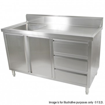 All Stainless Steel Kitchen Tidy Cabinet With Sink, Doors & Drawers,Great For Open Kitchens.All Stainless Steel Cabinets With Sink & Handy Doors & Drawers To Keep Kitchens Tidy And Hide Clutter