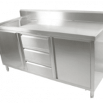 ALL STAINLESS STEEL KITCHEN TIDY CABINET WITH SINK, DOORS & DRAWERS