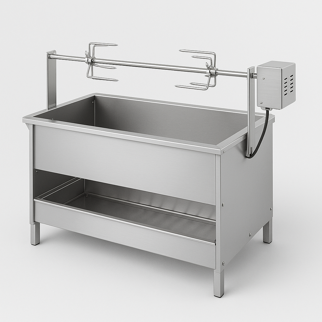 • 2 options available: stainless steel and black fireproof• Supplied with 2 grill plates• Durable and efficient• Fully adjustable spit bar