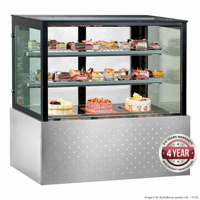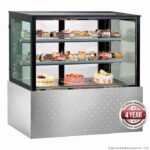This impressive cake display has two levels of shelving, strong secop compressors for functionality, LED lighting to see inside the interior, self-evaporating drainage to remove moisture, digital temperature control, sliding glassed rear doors, triple glazed front with heated filaments – all encased within a stainless-steel framework.