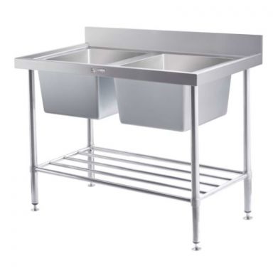 - Double Sink bench with dimensions of 2400mm wide x 700mm deep x 900mm high