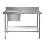 - Tops : 1.2mm gauge, high quality stainless steel, no. 4 finish, 450 x 450 x 300 welded bowl w/ sink waste, 100mm upstand (150mm bevelled upstand on 700 series), 20mm wet edge, 60 litre bowl, supplied with 1 x Watermark approved 90mm waste with basket