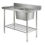 - Tops : 1.2mm gauge, high quality stainless steel, no. 4 finish, 1 of 450 x 450 x 300 welded bowl w/ sink waste, 100mm upstand (150mm bevelled upstand on 700 series), 20mm wet edge, 60 litre bowl, supplied with 1 x Watermark approved 90mm waste with basket