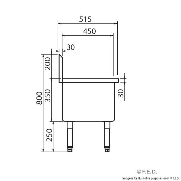 All Stainless Steel Single Mop Sink515 mm Wide × 520 Deep × 800 High• 1.2mm material; SUS304 (18/8); Hairline finish• bowls are fully welded, polished inside & out• 90 mm Ø drain hole