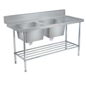 A high-volume commercial kitchen requires more than just a dishwasher; it needs a streamlined workflow. Our commercial double bowl inlet benches are engineered to be the starting point of your cleaning cycle. By providing two deep basins, these units allow staff to separate heavily soiled items for soaking while simultaneously pre-rinsing others, significantly reducing the workload on your dishwasher and improving overall sanitization.