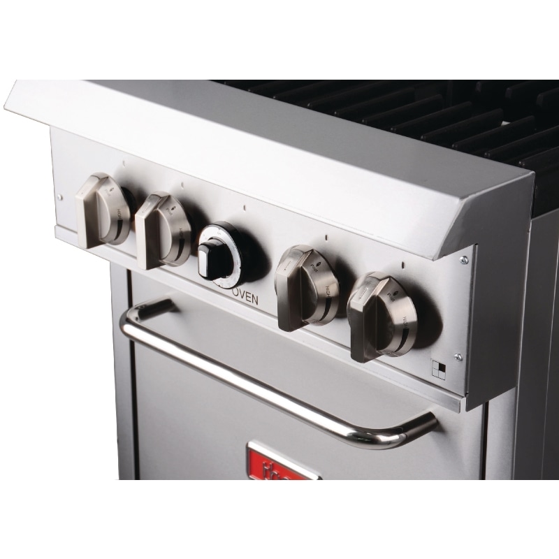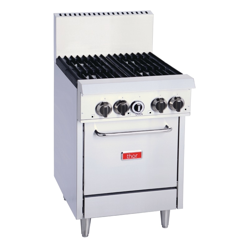 A high quality freestanding gas oven range from Thor, featuring a drop down door and four open burners with flame failure protection. Made from heavy duty stainless steel, it boasts premium cooking plates, stainless steel spill trays and a stainless steel splashback. Natural gas.