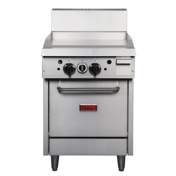 - From market leading brand Thor, the natural gas 24″ Freestanding Oven range boast exceptional power and reliability for the busiest of commercial kitchens. With the added versatility of a heavy duty 24″ griddle, the oven range is perfect for cooking multiple foods at once. The robust stainless steel exterior is both hard wearing and easy to clean, whilst the durable dial controls are precise and easy to use.