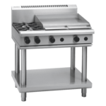 - Stainless steel spill trays under open burner