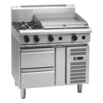- Stainless steel spill trays under open burner