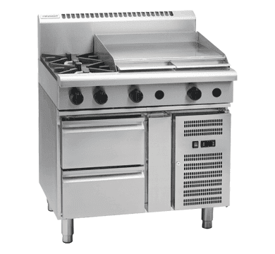- Cast iron 28MJ/hr open burners with forged brass cap