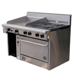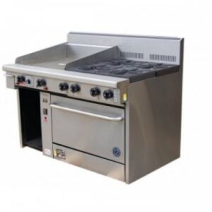- Cast iron 28MJ/hr open burners with forged brass cap