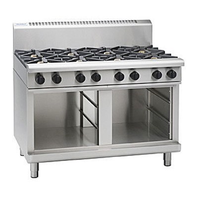 - Cast iron 28MJ/hr open burners with forged brass cap