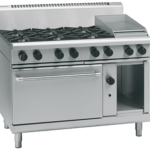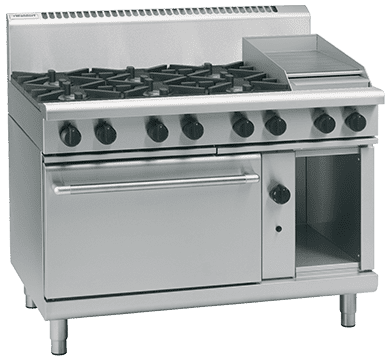 - Cast iron 28MJ/hr open burners with forged brass cap