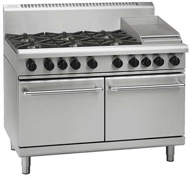 - Cast iron 28MJ/hr open burners with forged brass cap