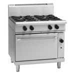 - Cast iron 28MJ/hr open burners with forged brass cap