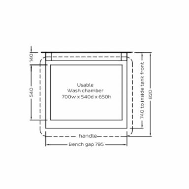 - Large internal wash chamber with useable area W 700mm x D 540mm x H 650mm