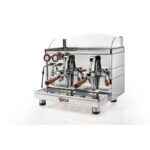 One polished steam wand and one manual hot water tap with retro’ style knobs. Auto level standard.