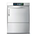 Undercounter Winterhalter warewashing machine which is economical and easy to operate. Supplied with “Variopower”: Winterhalter’s system which can regulate washing power for appropriate pressure levels according to the product being washed. Eco mode reduces water pressure, deteregent and rinse temperature while extending wash cycle by up to 30%. Energy models have circulating air heat recovery system which uses the energy in steam to heat up the rinse water, resulting in reduced running costs and improved room atmosphere.