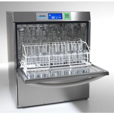 Undercounter Winterhalter warewashing machine which is economical and easy to operate. Supplied with “Variopower”: Winterhalter’s system which can regulate washing power for appropriate pressure levels according to the product being washed. Eco mode reduces water pressure, deteregent and rinse temperature while extending wash cycle by up to 30%. Energy models have circulating air heat recovery system which uses the energy in steam to heat up the rinse water, resulting in reduced running costs and improved room atmosphere.