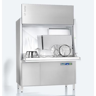 As an option, the UF can be fitted with integrated Energy circulating air heat recovery. This uses the energy from the hot steam to pre-heat the cold inlet water. This significantly reduces energy consumption, lowers operating costs and ensures that hardly any steam escapes when the machine is opened. The UF can also be configured so that the tank is filled directly with warm water. The warewasher is therefore ready for operation more quickly and consumes less energy.