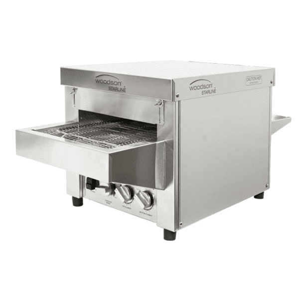 The Woodson Starline Snack Master S15 offers a super-efficient, easy loading compact small conveyor oven. The Snack Master S15 is small enough to fit on any benchtop, allowing for perfect toasting. Complete with belt extension for easy loading, individual controls for temperature, adjustments and a turbo fan cooling feature, toasting has never been so easy.