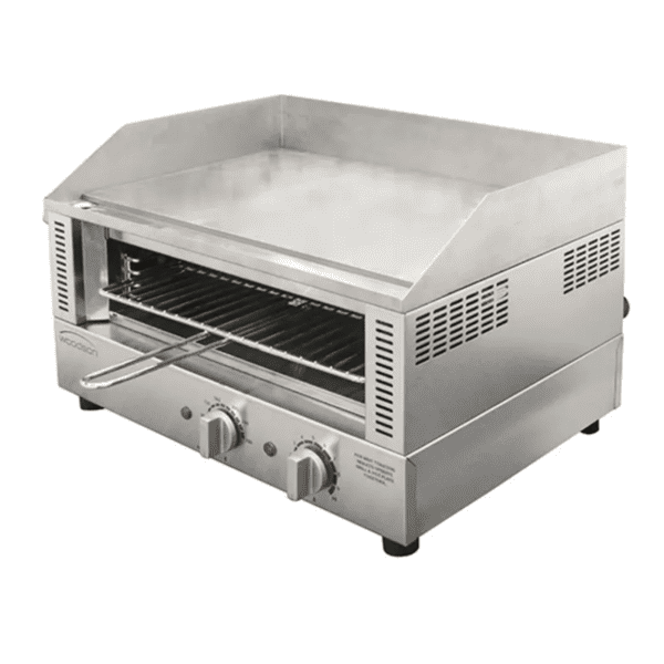 Featuring a 6mm thick cast steel griddle plate, and a six slice toasting rack, the Woodson Griddle Toaster provides an evenly heated cooking surface, together with a high performance toaster. An integrated splashback assists in containing any food or oil splashing, while a manual thermostat control ensures the preferred temperature is employed at all times. Reliable and versatile, this unit is a definite asset to all commercial kitchens.