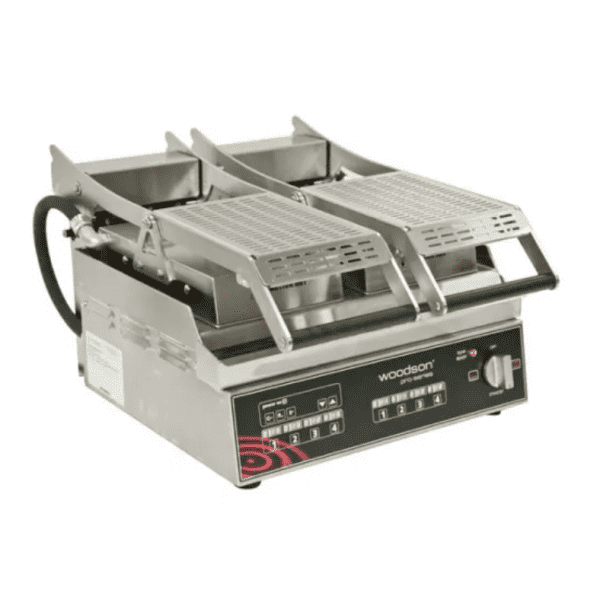 Constructed from a single piece stainless steel plate and protective upstand, the computer controlled Woodson Pro Series Twin Plate Contact Grill is the pinnacle of contact toaster technology. With a single heating plate and a three mode operation; dual plate heating, single plate heating and standby, this unit has been designed solely to ensure efficient use, every use. Effective and reliable, this unit is an absolute necessity for any quick service kitchen.