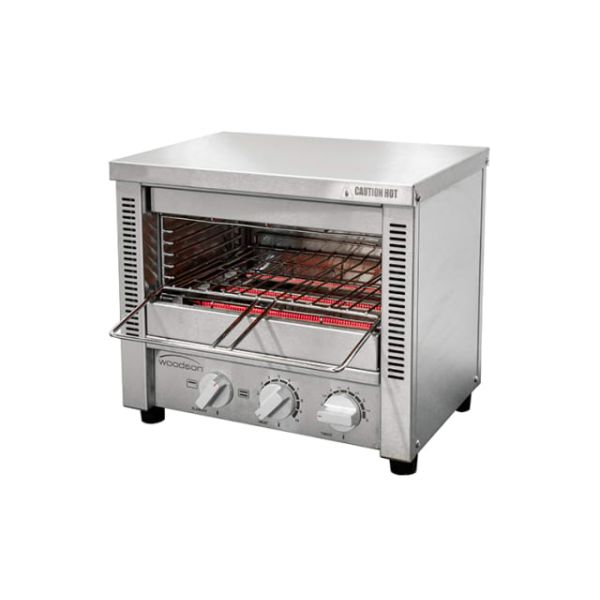 Utilising energy efficient ‘instant’ heat infrared glass elements situated both on the top and bottom of the unit, the Woodson Multi-Function Glass Element Toaster Griller with four slice capacity, delivers power and durability. With multiple position slides and racks for safe loading, and an easy to clean removable crumb tray, this unit is adaptable and flexible while still ensuring reliable performance. Offering fast, exceptionally even grilling and toasting, this infrared toaster griller is an asset to any quick service kitchen.
