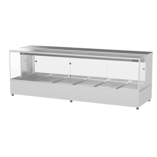 Effective, reliable and aesthetically pleasing, the Woodson 2 row, 6 bay Square Glass Hot Food Display is constructed from satin finished double skin stainless steel. Featuring an air insulated tank, overhead heat lamps and fully sealed toughened glass, this unit couples even heat distribution with safety of use and high levels of hygiene. In-tank temperature controls enable accurate temperature measurements while providing lower running costs, making this unit highly energy efficient. As a result, this unit continuously delivers high quality performance, use after use.