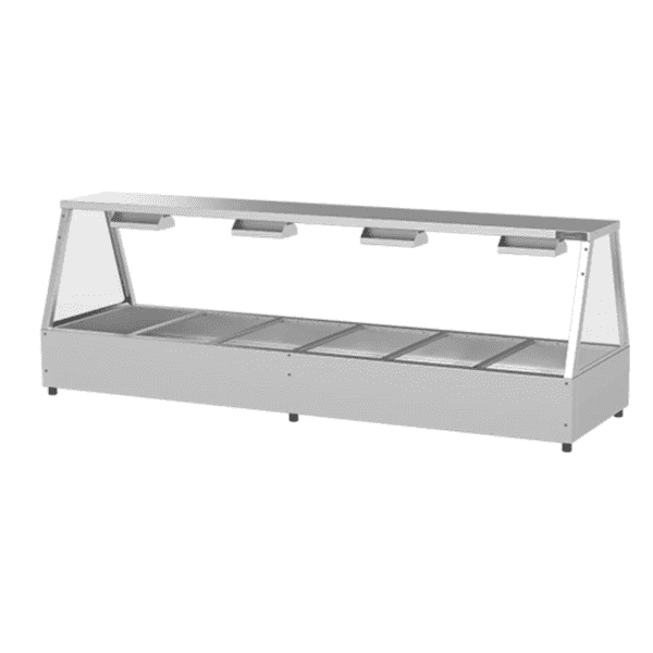Effective, reliable and aesthetically pleasing, the Woodson 2 row, 6 bay Self Serve Hot Food Display is constructed from satin finished double skin stainless steel. Featuring an air insulated tank, overhead infra-red heat lamps and toughened glass ends, this unit couples even heat distribution with safety of use. In-tank temperature controls enable accurate temperature measurements while providing lower running costs, making this unit highly energy efficient. As a result, this unit continuously delivers high quality performance, use after use.