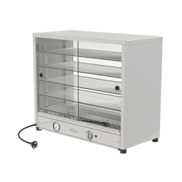 Crafted specifically for holding and displaying pies, the 50 capacity Woodson Pie Display, features toughened glass for front and rear sliding panels. Together with a double skin stainless steel cabinet, this unit is extremely durable. A manual thermostat control allows the unit to be set to a specific temperature, while a temperature gauge monitors and displays the temperature. Simple and straight forward, this pie display delivers quality results, while maintaining a sleek, attractive appearance.